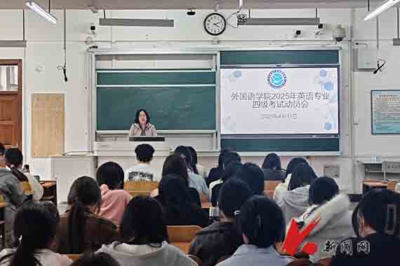 4月11日,8xbet手机客户端外国语学院在博学楼C208教室召开2025年英语专业四级考试动员会,学院领导、英语专业负责人、学办负责人及80余名本科生参会。
