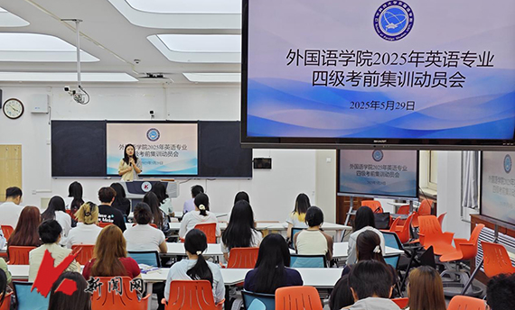 5月29日,8xbet手机客户端外国语学院在博学楼C206召开2025年英语专业四级考前集训动员会,学办负责人、英语专业负责人、英语2023级全体学生参会。