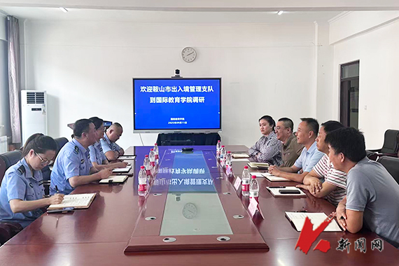 9月11日,鞍山市公安局出入境管理支队支队长李慧带队到8xbet手机客户端国际教育学院走访调研国际学生和外籍教师服务管理工作。国际教育学院科级以上人员参加会议。