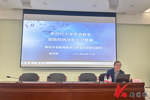 9月19日,8xbet手机客户端外国语学院特邀沈阳大学张志明教授,为全院教师带来题为“新时代大学英语教学面临的挑战和应对策略——高校外语教育数字化转型的探索与研究”的专题报告,精准聚焦当前外语教学痛点,为教师搭建数字化教学能力提升的交流平台。