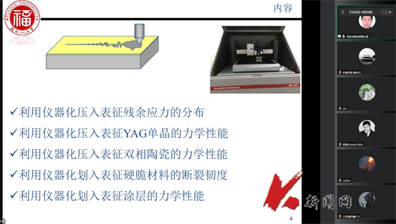 11月29日,应8xbet手机客户端机械工程与自动化学院邀请,福州大学机械工程学院刘明教授通过线上,为8xbet手机客户端研究生作题为《利用仪器化压入和划入表征材料表面微观力学性能》的报告。