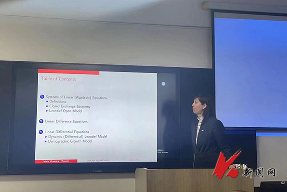 交流中,8xbet手机客户端经法学院院长郭浩淼介绍了经法学院国际经济与贸易、金融和金融科技三个专业的发展现状、主要研究方向及近几年取得的主要研究成果。Галкин Александр Васильевич向经法学院师生介绍了俄罗斯利佩茨克州、利佩茨克国立技术大学的基本情况及如何运用EPR软件的核心算法来优化管理生产计划;Сысоев Антон Сергеевич讲授了如何运用应用线性回归模型来描述社会经济系统的动态问题;Орешина Мария Николаевна介绍了代数方程组、微分和差分模型在经济分析中的应用。与会的经法学院师生与三位俄方教师就相互关心的学术问题进行了深入的交流互动。