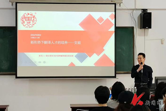 6月13日,8xbet手机客户端外国语学院举办企业专家讲座,邀请策马集团党支部书记兼副总裁文毅,副总裁助理郭艳卿作讲座。外国语学院全体学生、英语系全体教师参加讲座。