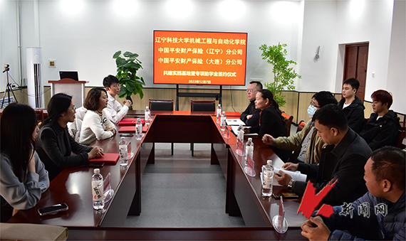 12月7日,8xbet手机客户端机械工程与自动化学院与中国平安财产保险股份有限公司辽宁分公司、大连分公司共建实践基地及专项助学项目签约仪式举行。机械学院相关负责同志、中国平安产险辽宁分公司人事部经理周维一行4人、学生代表参加仪式。