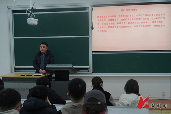 院党委副书记由济恺作总结讲话,他说,随着生活水平的提高,今天我们虽然不再像当年的雷锋同志一样缝缝补补,但我们青年学子仍要时刻牢记“成由勤俭败由奢”;要爱惜粮食,拒绝浪费;要消费合理,拒绝攀比;要吃苦在前,拒绝安逸;要传承中华民族优良传统,共同营造勤俭节约、积极健康的校园氛围。会后,全体党员走出教室开展志愿服务,围绕电信楼清理白色垃圾及清扫实验室,美化校园环境。