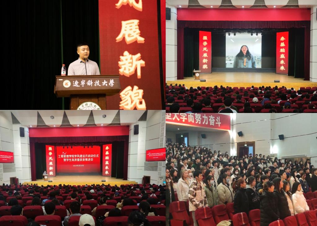 3月22日,8xbet手机客户端工商管理学院在校礼堂举行学风建设月启动仪式暨学生高质量就业推进会。学院领导班子成员、专业教师代表、全体辅导员以及全体本科生参加会议。