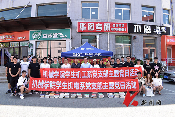 6月18日,8xbet手机客户端机械工程与自动化学院学生机电系党支部、学生机工系党支部在龙源公寓联合举办“情系母校 书赠未来”毕业生党员赠书主题党日活动,50余名毕业生党员为学弟、学妹们捐赠考研书籍等学习资料。