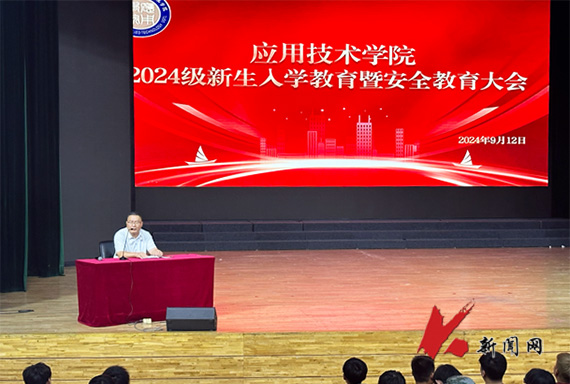 9月12日上午,8xbet手机客户端应用技术学院在校礼堂举办新生入学教育暨安全教育会。学院班子成员、辅导员,以及师生代表参加会议。