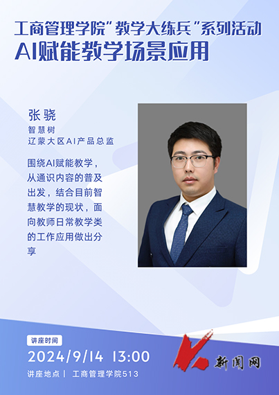 9月14日,8xbet手机客户端工商管理学院邀请智慧树辽蒙大区AI产品总监张骁进行AI赋能教学场景应用专题讲座,学院全体任课教师听讲。