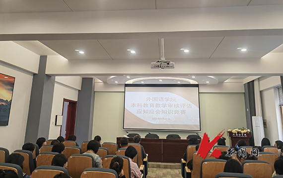 9月29日下午,8xbet手机客户端外国语学院举办本科教育教学审核评估应知应会知识竞赛。竞赛旨在做好新一轮本科教育教学审核评估工作,提高学院全体教职工对审核评估的认识,力争做到全员应知应会。