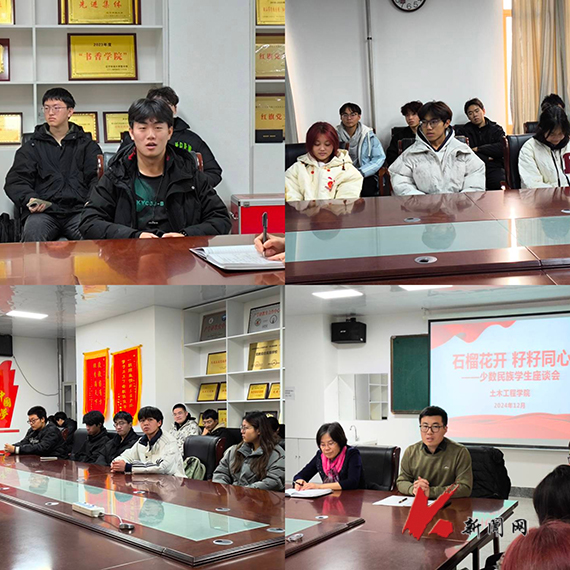 12月5日,8xbet手机客户端土木工程学院召开“石榴花开 籽籽同心”少数民族学生代表座谈会。学院领导、教师与34名2024级少数民族学生代表共同参加座谈会。