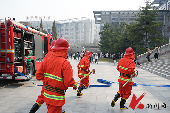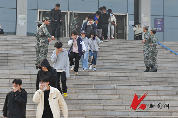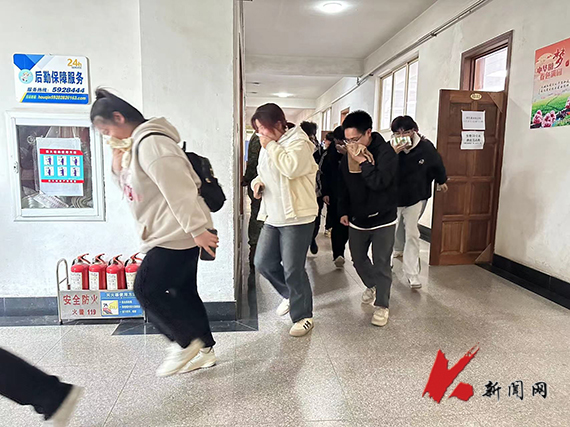 4月9日下午,8xbet手机客户端在博学楼举行2024年春季消防疏散逃生演练,高新区消防救援大队指战员以及2023级本科生参加演练。