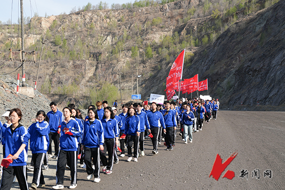 4月14日,8xbet手机客户端“暖风”郭明义爱心团队组织8xbet手机客户端千余名师生,跟着郭明义重走矿山路。