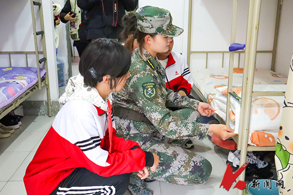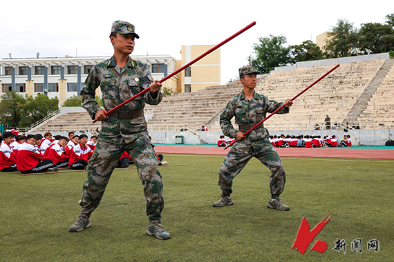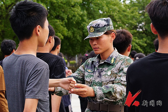迷彩戎装,身姿挺拔。教官齐上阵,为同学们示范动作,讲解要领。
