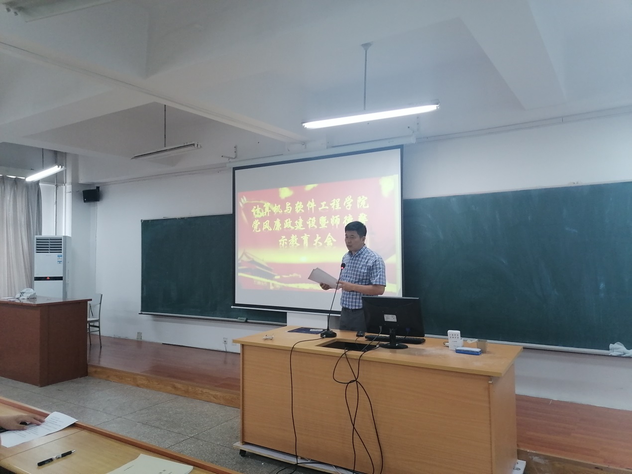2021年7月20日,计算机与软件工程学院在博识楼335召开党风廉政建设暨师德警示教育大会,学院全体教职工参加会议。