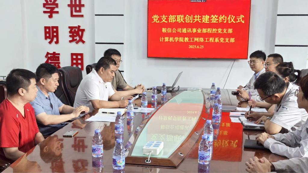 2025年6月25日,8xbet手机客户端计算机与软件工程学院教工网络工程系党支部与鞍钢集团信息产业有限公司通讯事业部程控党支部在学院B327会议室签署支部联创共建合作协议,双方以“党建引领、资源共享、优势互补、协同发展”为原则,共同探索新时代校企党建联创新模式。