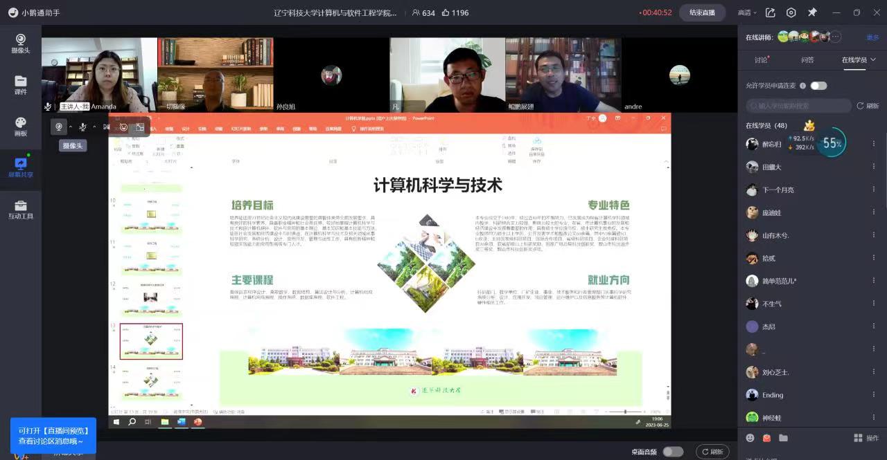 为了让考生更加直观地了解学校特色和学科发展,切实提高本科生源质量,计算机与软件工程学院充分利用高考至志愿填报截止这段关键期、黄金期,做好招生宣传工作。6月25日晚,计算机学院线上召开招生宣讲会,由学办主任隋丽玲主持,学院党委副书记李春生、各系主任、校企合作单位中软国际教育科技集团陈伟俊总监依次进行宣讲。本次宣讲会重点面向学院18个生源基地高中,吸引了740名考生及家长观看。