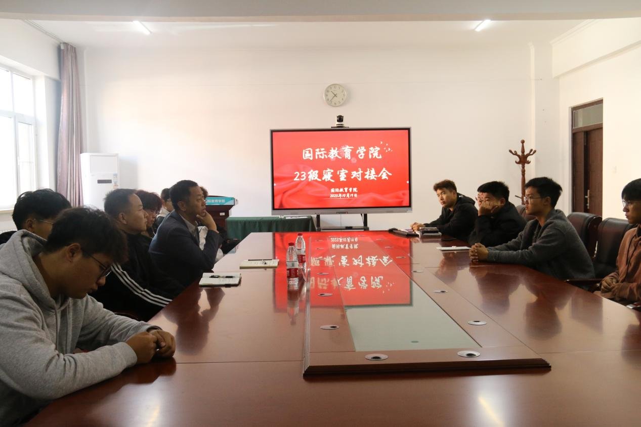 10月19日上午,国际教育学院在博远楼205会议室召开了学院领导与2023级学生班级、寝室对接会。学院领导班子成员、2023级辅导员及对接的班级、寝室全体成员参加此次会议。