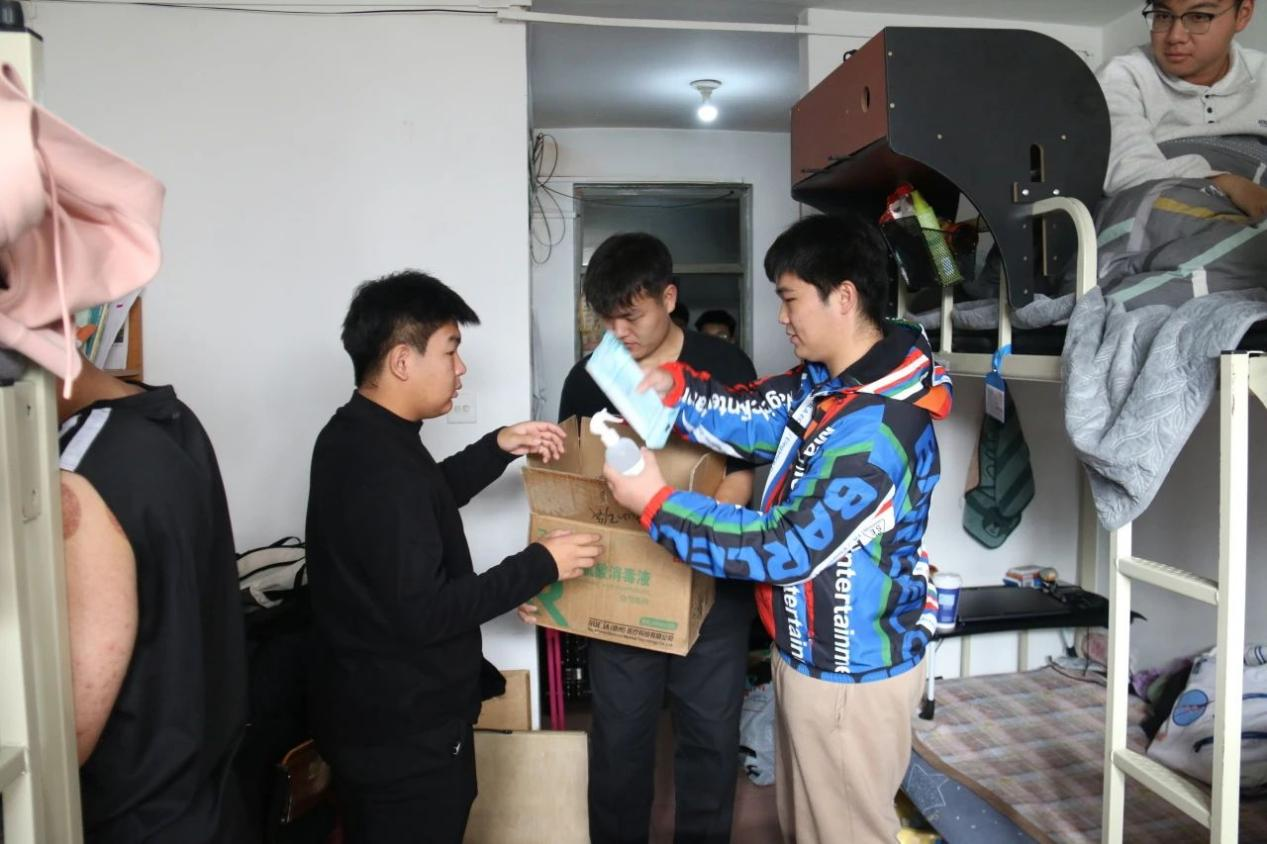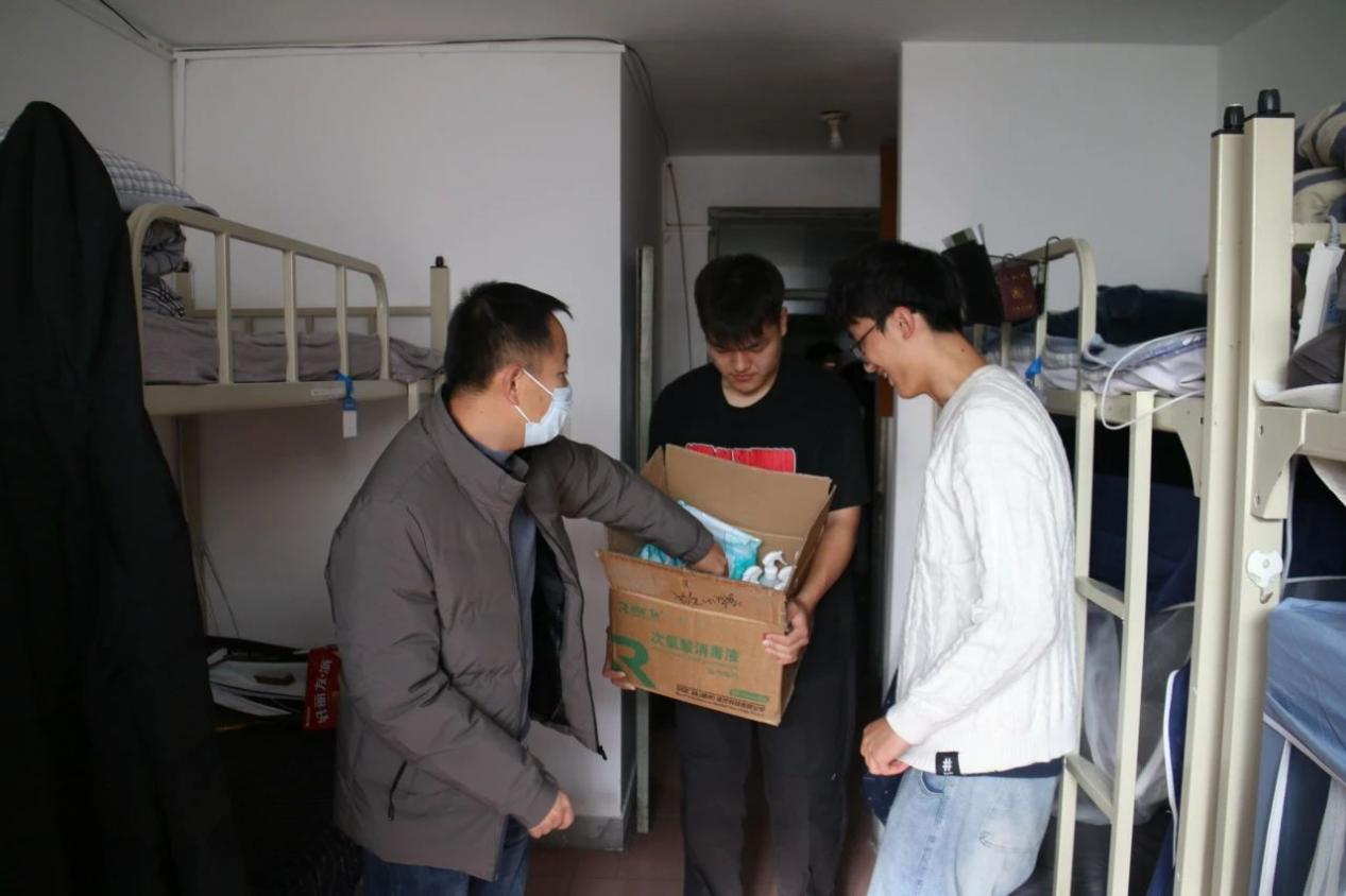 冬季气温多变,正值各种传染病特别是呼吸道传染病的高发季节,学院教师仔细检查了学生寝室通风、卫生、内务整理等方面情况,走访生病寝室,认真叮嘱同学们要注意好寝室卫生、保持通风、按时对寝室进行消杀,尽量不去人群密集、空气不流通的封闭场所,如出现身体不适等情况及时就医治疗。随后,学院教师为同学们足额足量发放口罩和消毒喷剂,并提醒同学们消毒喷剂的用量要求。