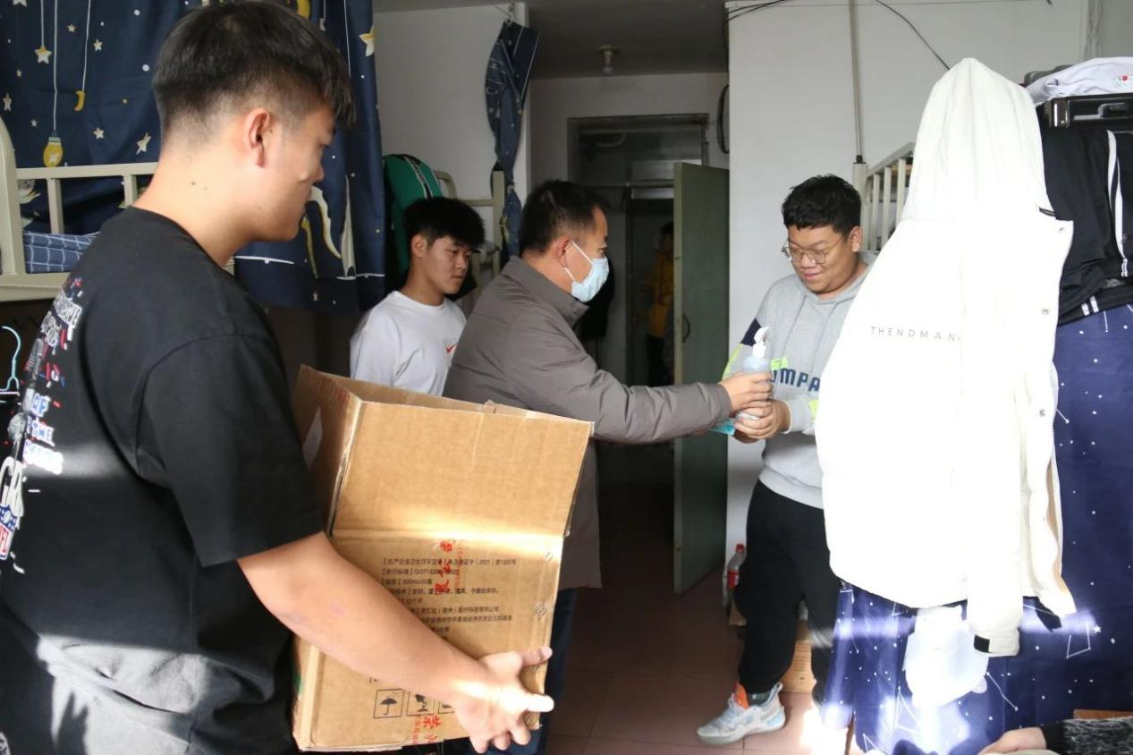 11月24日,8xbet手机客户端国际教育学院教师走访学生宿舍,为国际教育学院学生发放口罩和消毒喷剂。