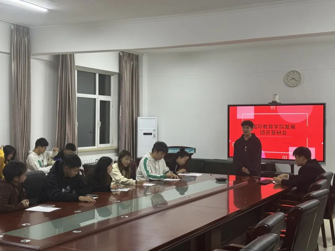 12月7日晚,国际教育学院于博远楼206会议室召开国际教育学院团员答辩会。答辩会由学院辅导员张翀睿、党员代表、团员代表、团支书代表、学生骨干代表、群众代表等七人担任现场评委,团员候选人参加本次答辩会。