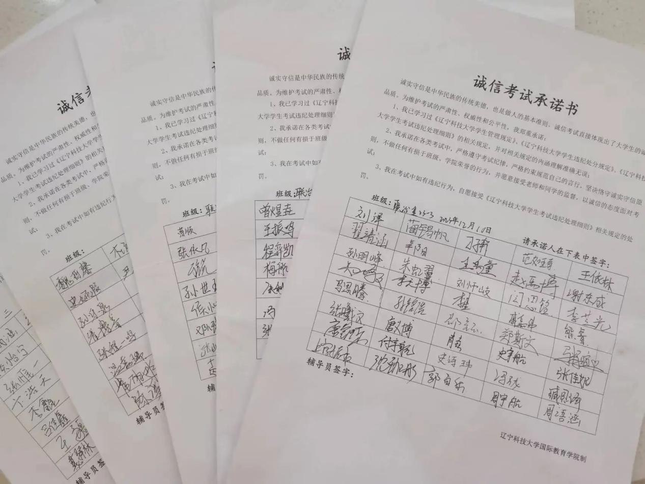 学院积极通过线上线下不同渠道宣传诚信考试教育、多措并举,加强考风建设。2023年12月到2024年1月期间,辅导员面向学院联冶金专业全体学生多次召开线下诚信考试主题教育班会。会上为同学们解读了《8xbet手机客户端学生考试违纪处理细则(试行)》,并向同学们强调了考试注意事项及违纪、作弊行为的严重后果。最后向同学们宣读了《诚信考试承诺书》,学院联冶金专业学生全体签署承诺书。此外,还通过在微信群发布诚信考试、积极备考提示等方式,利用网络媒介落实学院考风考纪建设工作。