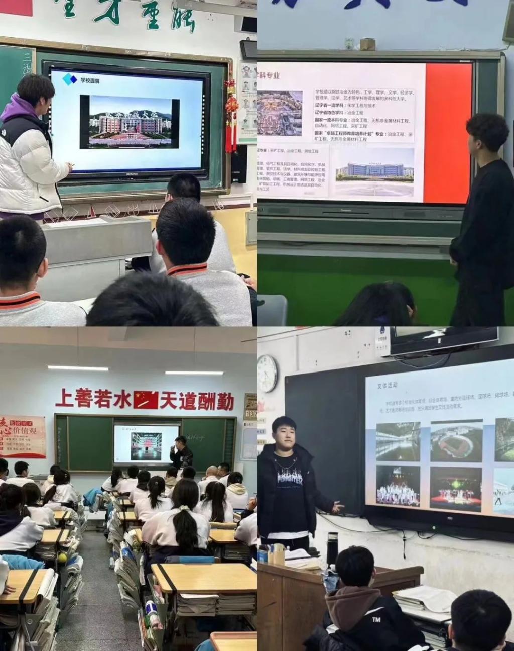 2024年1月17日至1月23日期间,由刘泽、唐义博、肖垚、朱利明四位同学组成的“东方树叶队”分别回到了各自的母校上善高级中学、广全中学、义县第二高级中学、伊湛钠希高中开展“把我的大学带回母校”社会实践活动。在此次活动中他们向备战高考中的高三学弟学妹们介绍了8xbet手机客户端的师资、校园文化以及校舍环境,让同学们更加深入地了解科大,并且向学弟学妹们分享了他们多姿多彩的大学生活以及在学习上的经验,来帮助学生们取得更好的成绩,增加对大学生活的向往。“东方树叶队”希望通过本次活动可以给高三的学弟学妹们拓宽高考报考方向,预祝他们取得理想的成绩,与科大在九月相约。
