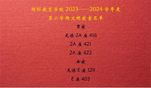 宿舍文化是校园文化建设的重要组成部分,本次宿舍文化节系列活动的成功举办,是学院加强宿舍文化建设、营造文明和谐寝风的重要举措。未来,国际教育学院将继续加强寝室文化建设,丰富宿舍文化内容,探索宿舍文化建设长效机制,完善宿舍管理机制,引导学生养成良好的寝室文明,不断提升学生综合素质。也希望同学们能够以优秀寝室为榜样,相互学习,共同进步,在良好的寝风中收获知识、培养品格、拓展兴趣、增进友谊。