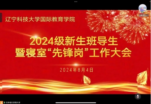 8月4日下午,国际教育学院在线上召开了2024级新生班导生培训会暨寝室“先锋岗”岗前动员大会。学院辅导员张翀睿主持会议,全体班导生暨寝室“先锋岗”学生骨干参加了此次培训。