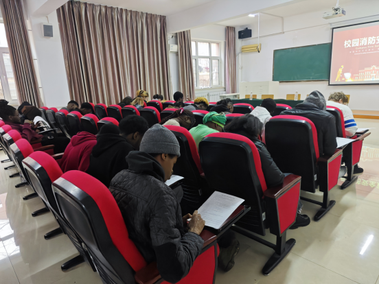 11月8日下午,鞍山市公安局出入境管理支队应8xbet手机客户端国际教育学院邀请,于博远楼105教室为全体来华留学生开展法律法规及安全教育讲座。会后,国际教育学院组织全体来华留学生开展消防应知应会知识竞赛,并进行了消防知识宣讲。