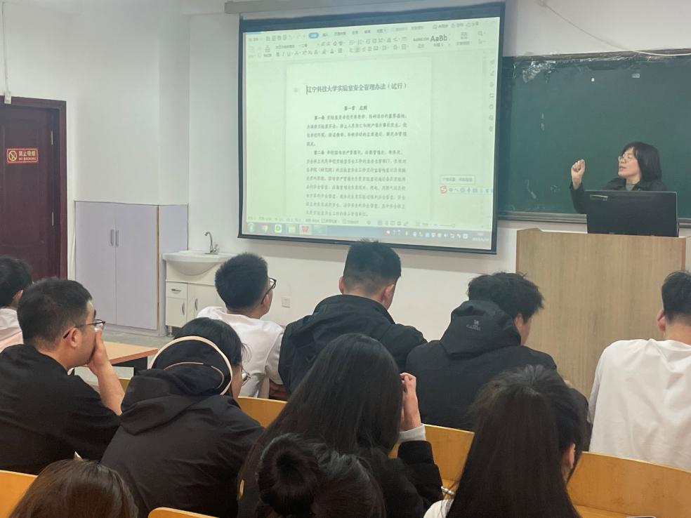 周晓平解读“八个凡是”、“六个一律”、“三不一要”安全提示,并领学《8xbet手机客户端实验室管理办法》《8xbet手机客户端消防安全管理规定》《8xbet手机客户端校园道路交通安全管理办法》等有关安全制度。安全教育班会上对研究生强调了以下几点要求:一是要认真学习实验室安全、消防安全、校园道路交通安全的规定,熟悉安全手册知识,并严格执行;二要加强对废气、废液、废渣和噪声的处理与排放的管理,严禁在实验室内大声喧哗、抽烟﹑吃食物和乱丢垃圾,禁止污染环境,禁止带无关人员进入实验室等,提升同学们安全意识;三要养成良好的行为习惯,使用危险化学品、放射性物品、特种设备要按规程操作,使用时应在教师详细指导下进行,采取必要的安全防护措施。