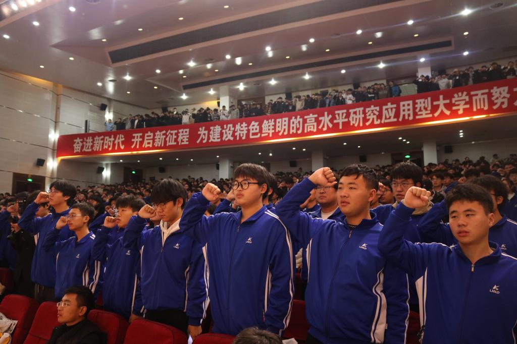 大会在雄壮的国歌声中拉开帷幕。学院院长周卫红作题为《教风学风联动,提高学生培养质量》动员讲话,他从学院通过建筑环境与能源应用工程专业评估和认证、推进建设智能建造新工科专业和土木类创新“3+1”人才培养模式入手,强调响应学校“三全育人”综合改革号召,持续推动学风建设纵深发展的重要性。通过分析制约学院教风学风建设的突出问题,提出2024年教风学风建设年的具体要求和举措。周卫红希望学院全体师生共同努力、通力协作,以教风带学风、以管理促学风、以服务护学风、以环境育学风,真正形成全员、全过程、全方位育人的良好局面。学生代表、院学生会执行主席徐浩哲带领全体同学宣读《诚信考试承诺书》,一时间,“严守考试纪律、净化考场秩序、严格规范自己,捍卫道德底线和集体荣誉...”的誓言响彻整个礼堂。
