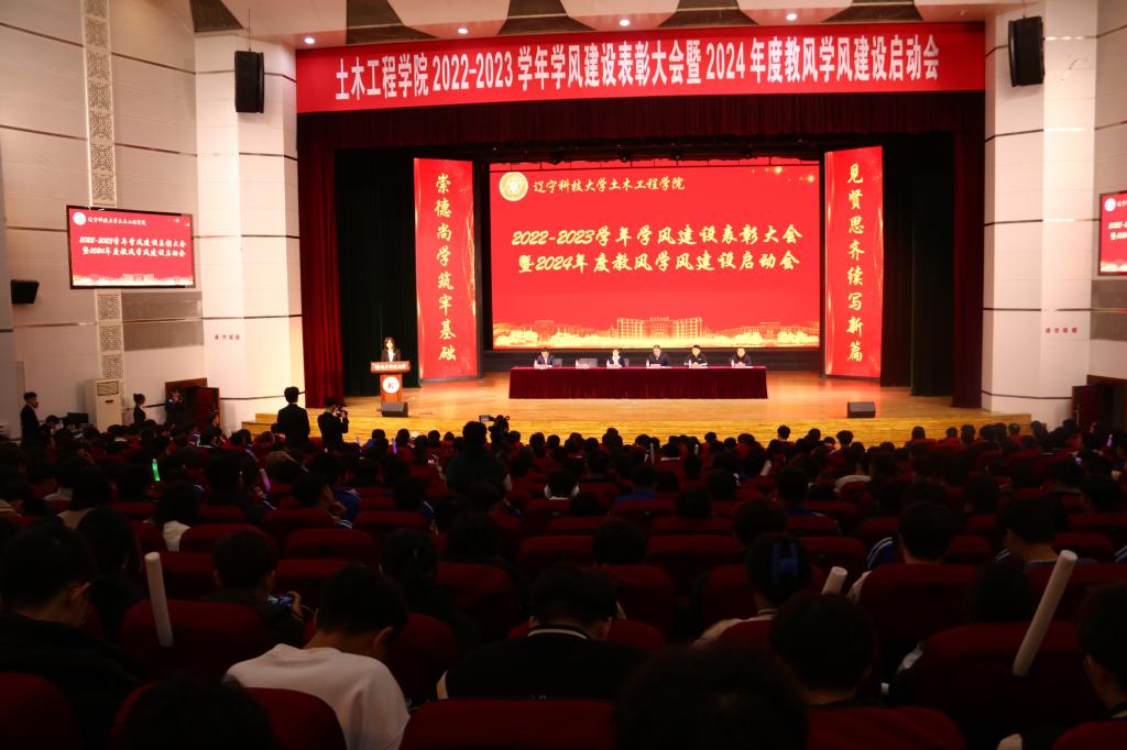 12月8日,8xbet手机客户端土木工程学院2022-2023学年学风建设表彰大会暨2024年度教风学风建设启动会于校礼堂成功举办,学院党政领导班子成员、全体教职工和本科生1300余人参加大会。会议由学院党委副书记王一主持。