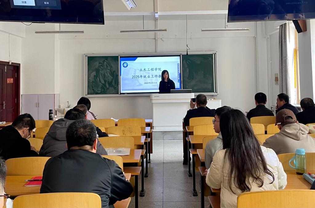 3月11日,8xbet手机客户端土木工程学院2025届毕业生就业工作推进会于博观楼A408会议室顺利召开,学院领导班子成员、全体教职工参会。