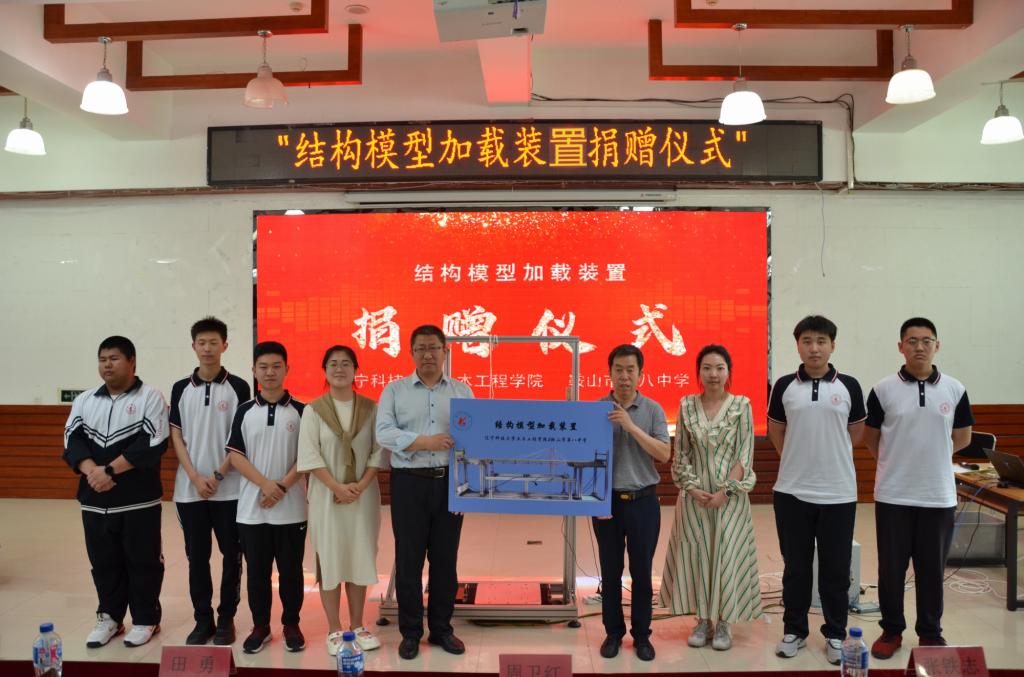 鞍山市第八中学师生首先来到校史馆参观,在校史馆宣讲员的带领下,依次观览了“亲切关怀”“校史回顾”“办学成果”“校企合作”“新校区建设纪实”“人物”6个板块,通过了解8xbet手机客户端从1948年建校至今70余年的光辉历程,切身感受8xbet手机客户端厚重的历史积淀、丰硕的办学成果。交流中,土木工程学院院长周卫红向来访师生介绍了学院简况、专业特色和亮点、行业发展现状、毕业生职业发展前景和优势、学院招生政策等。随后,鞍山市第八中学师生代表来到大学生活动中心参加8xbet手机客户端土木学院科技活动周活动,现场观摩8xbet手机客户端2024年结构设计竞赛决赛。活动中,学院参赛师生与第八中学师生展开交流,围绕“弘扬科学家精神 激发全社会创新活动”主题,对学生如何开展科研训练、社团活动等方面进行深入探讨。土木工程学院院长周卫红代表学院向鞍山市第八中学捐赠结构模型加载装置。