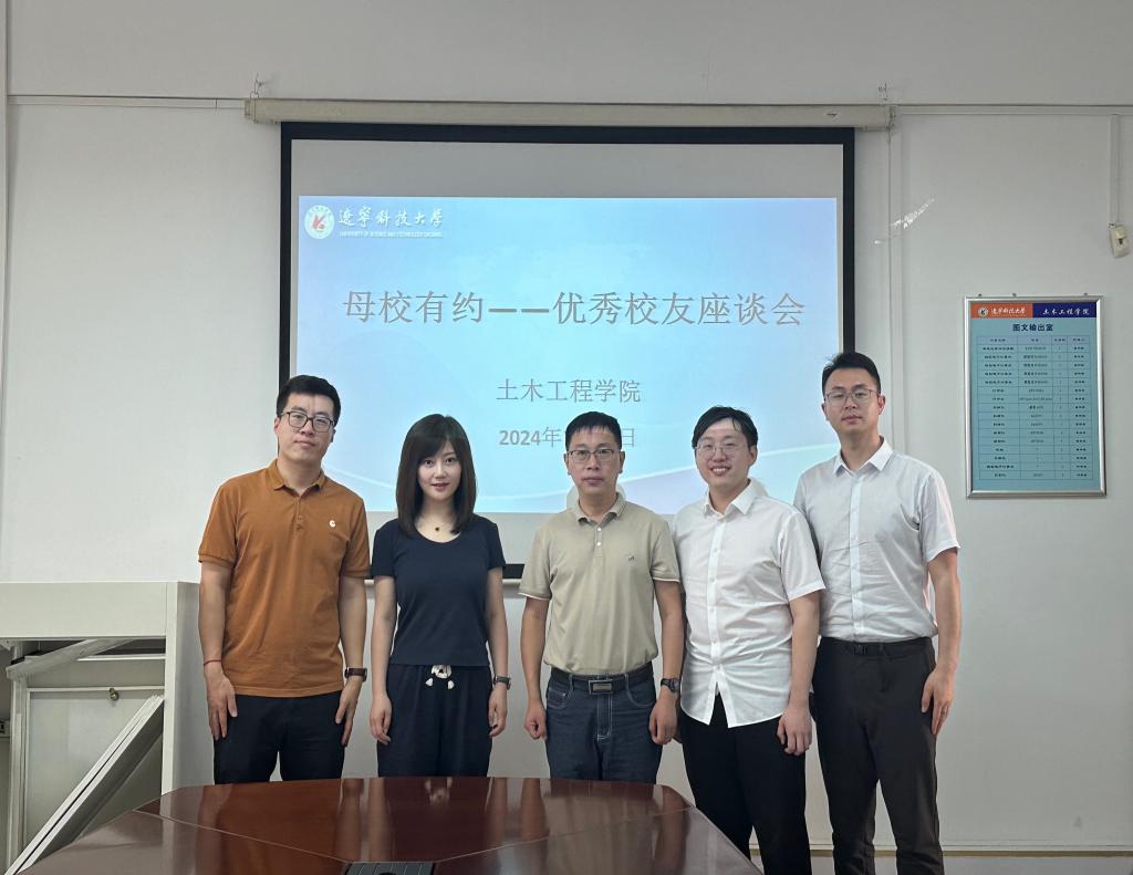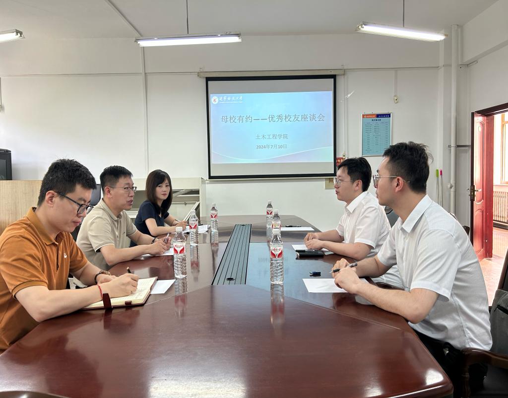 7月10日,8xbet手机客户端土木工程学院于博观楼A312会议室举行“母校有约”——优秀校友座谈会。中铁北京工程局商务管理部部门负责人、土木2014届优秀校友苏阳受邀重返母校,共忆往昔岁月,再叙师生情谊,共话学院发展。学院领导班子成员、校友工作相关负责同志参加座谈会。