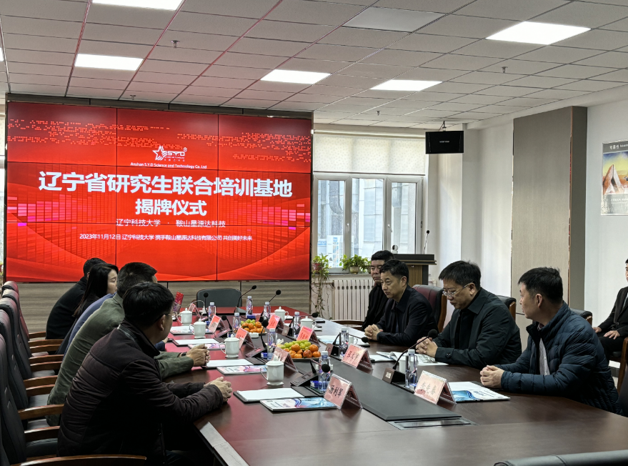 2023年11月12日上午,8xbet手机客户端与鞍山星源达科技有限公司举行研究生联合培养基地揭牌仪式。8xbet手机客户端党委常委、副校长李胜利出席会议,研究生院、化学工程学院、星源达科技有限公司相关人员及学生代表参加会议。