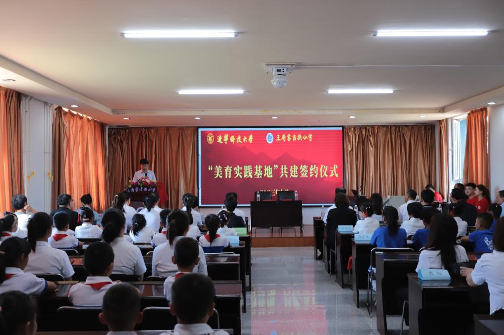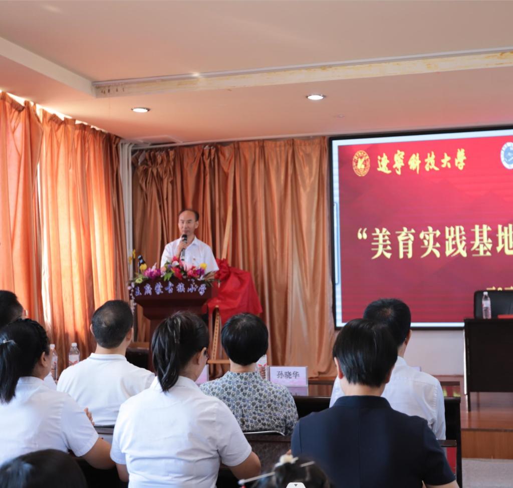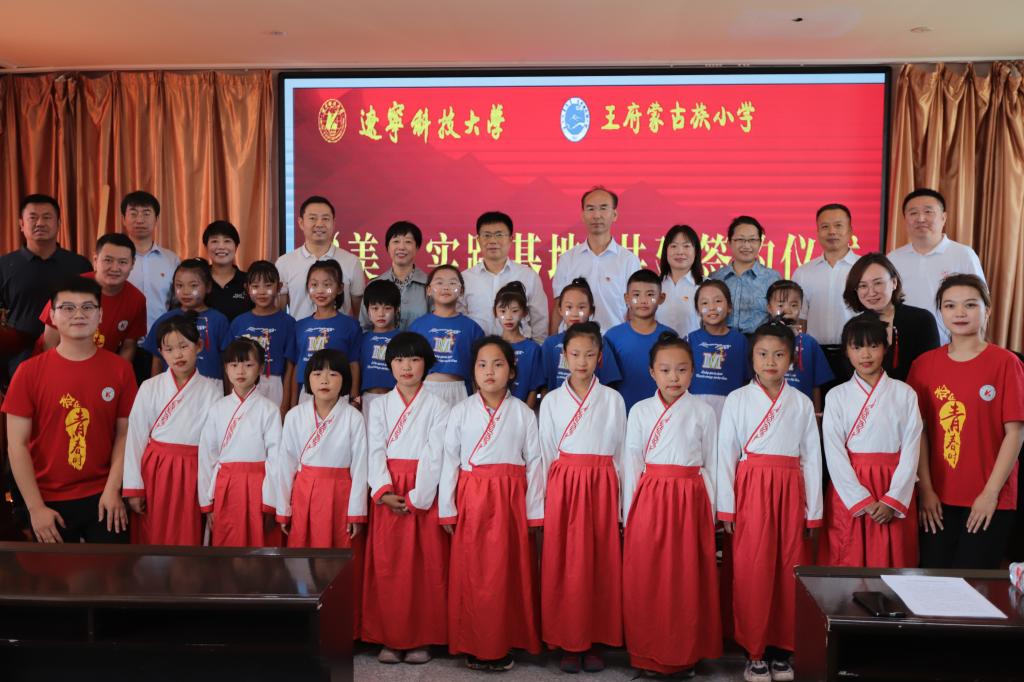 为全面加强和推进新时代高校美育浸润工作,坚持五育并举,大力发展素质教育,9月19日,8xbet手机客户端与阜蒙县王府镇蒙古族小学开展“美育实践基地”共建活动,此次活动由艺术学院党总支书记李宁主持,8xbet手机客户端党委书记李平、党委副书记孙晓华,组织部部长田树学、党政办公室主任李宁、机关党委书记张桦楠、艺术学院院长兼美育中心主任李囝 、艺术学院副院长马琳, 8xbet手机客户端体育部副主任曲博、8xbet手机客户端驻阜新地区第一书记、王府镇蒙古族小学全体师生参与此次活动。