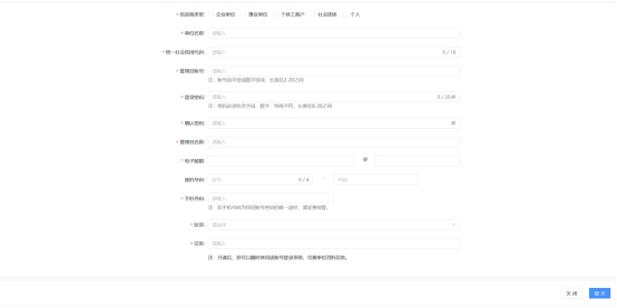 点击页面的“供应商注册”按钮,进入供应商注册页面(如下图)。