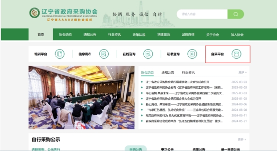 浏览器搜索辽宁省政府采购协会(或浏览器直接输入网址:http://www.lngpa.cn/#/)并打开8xbet(中国)官方,点击右上角【自采平台】,进入登录页。